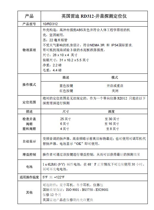 1.井蓋定位儀 RD312可能含有禁忌內(nèi)容或者注意事項,具體詳見說明書;