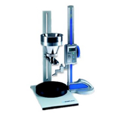 在一些情況,為了模擬一些產(chǎn)品的實(shí)際生產(chǎn)條件,使用一個(gè)錐形漏斗,其規(guī)格是按照歐洲藥典2.9.16章的要求,采用不繡鋼結(jié)構(gòu),容量為400ml,同時(shí)提供三個(gè)規(guī)格的開口直徑:10、15、25mm,他們可以快速互換,結(jié)構(gòu)和測量過程與圓筒附件相似,也有一個(gè)檔板。我們可以增加一個(gè)天平和計(jì)時(shí)器與檔板的微動(dòng)開關(guān)連接,實(shí)現(xiàn)自動(dòng)計(jì)時(shí)和稱重;它有四種工作模式:固定的樣品重量,測量流動(dòng)時(shí)間;固定的樣品體積,測量流動(dòng)時(shí)間;固定的流動(dòng)時(shí)間,測量樣品重量;繪制流動(dòng)時(shí)間和樣品重量的關(guān)系圖。