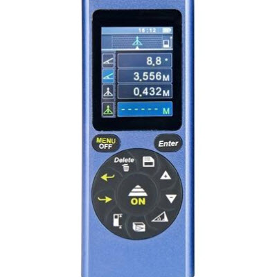 可間接測量(兩勾股定理程序),可從頂部,尾部,尾部支腳,三角架測量,適用測距離、面積、體積,梯形測量,五秒自動測量功能,線段放樣測量。