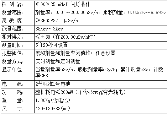 5、劑量率,累積劑量均可測量。
