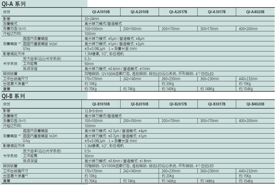 ●次系列2D影像測量機采用雙遠心光學系統(tǒng),可提供**率測量。QI-A型號可提供寬視場(32x24mm)測量。QI-B系列(12.8x9.6mm)能輕松測量微型工件和表面不均勻工件的尺寸。
