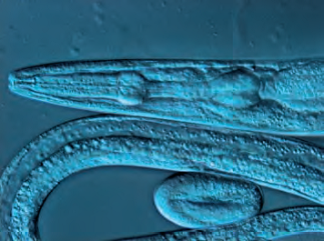 不同微分干涉(DIC) 棱鏡位置下記錄的線蟲。圖像來源:法國Strasbourg (斯特拉斯堡) 的遺傳與分子細胞生物學研究所(IGBMC)