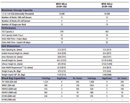MVE HEco 1800 Series Freezers